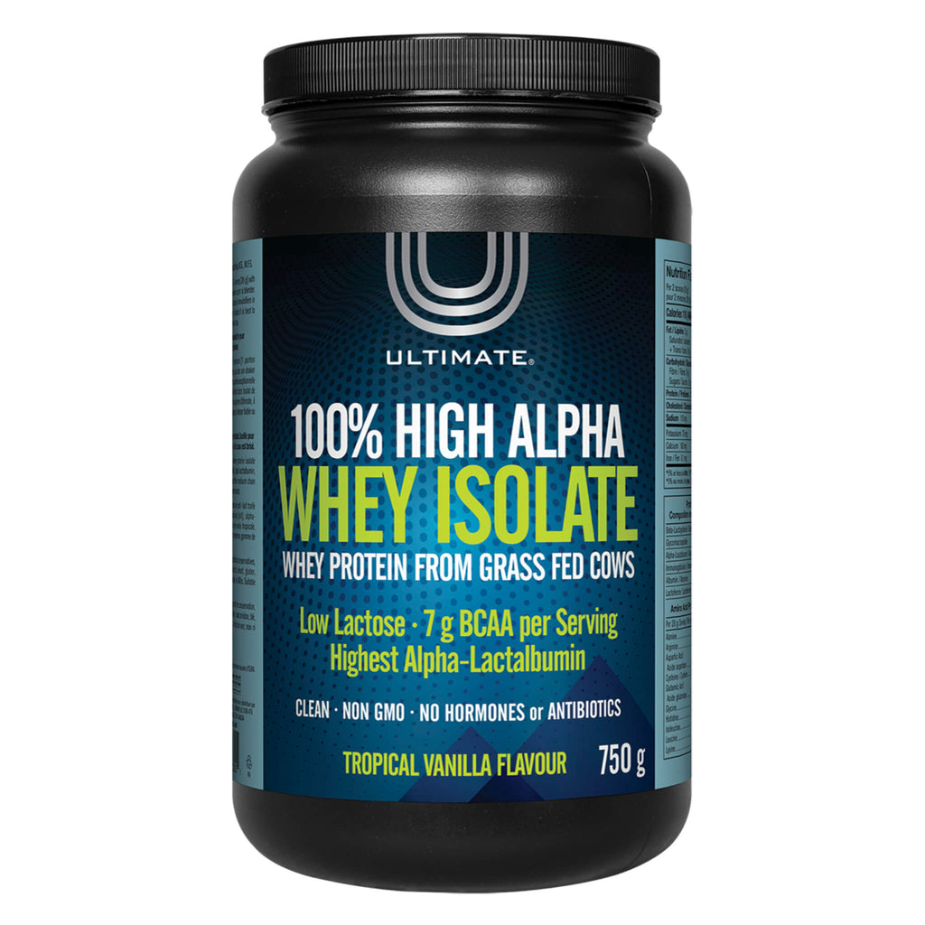 Ultimate 100% High Alpha Whey Isolate is a high-performance whey protein derived from grass-fed cows. It contains the highest alpha-lactalbumin protein content and provides exceptional levels of essential amino acids, including 7 g of branched-chain amino acids (BCAA) per serving. This low-lactose, non-GMO isolate is free of hormones and antibiotics, is purified by microfiltration, and is 3rd party tested for over 700 contaminants.