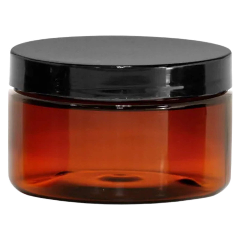 These amber plastic jars are heavy walled PET plastic and feature a low profile. The caps are polypropylene plastic, which is both highly durable and fully recyclable. The caps are lined with polyethylene foam, removable if you wish, which feature excellent chemical and moisture resistance. These containers may work well with lotions, cosmetics, face washes, and other water-based products.