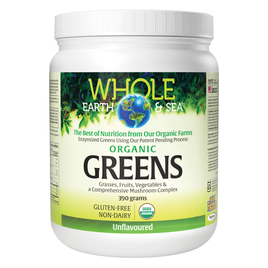 Whole Earth & Sea Organic Greens is a plant-based superfood formula featuring 6 g of the cleanest possible plant-based vegan protein per serving. This unique food supplement harnesses the power of natural fermentation to deliver highly digestible and bioavailable protein, alongside a broad spectrum of essential nutrients, in a single, convenient serving.