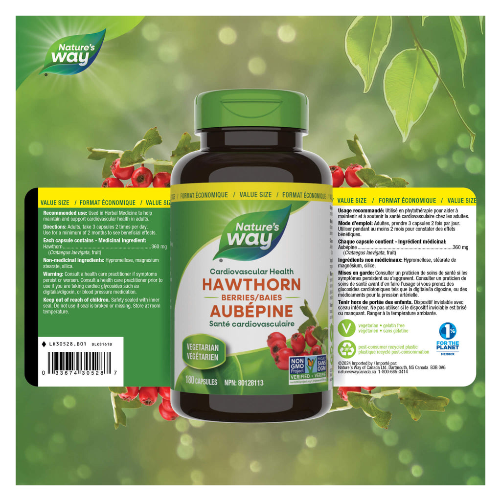 Nature's Way Hawthorn Berries is used in herbal medicine to help maintain and support cardiovascular health. Nature's Way Hawthorn Berries is Vegetarian.