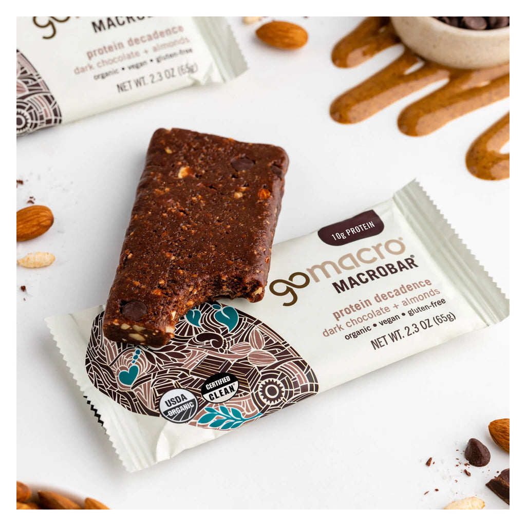 Get all the rich, chocolatey goodness of a brownie in a wholesome snack with our Protein Decadence MacroBar. Our blend of organic cocoa and vegan chocolate chips is sure to satisfy any chocolate lover’s craving. With an added bonus of 10 grams of protein per bar, our Dark Chocolate + Almonds MacroBar will keep your sweet tooth and wellness goals in check!
