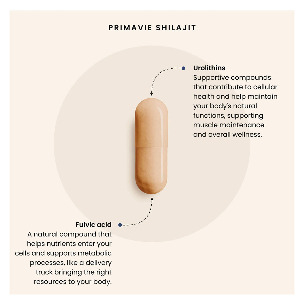 PrimaVie® Shilajit is a premium Himalayan adaptogen meticulously purified to enhance mitochondrial energy production and vital functions. This clinically validated formula improves muscle strength, stimulates collagen production, and supports healthy testosterone levels.