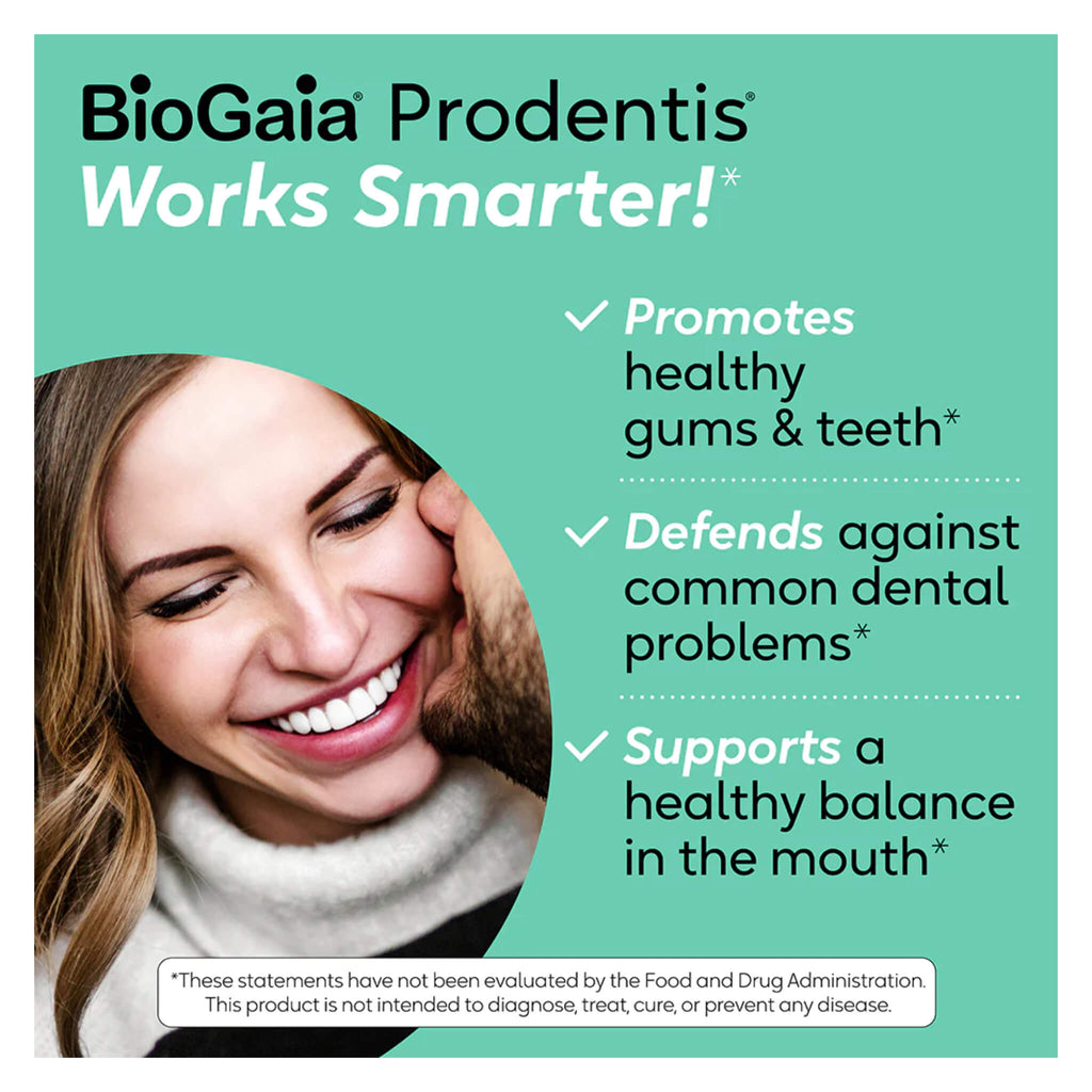 BioGaia Prodentis lozenges are a daily probiotic supplement for healthy gums and fresh breath. Proper oral hygiene goes beyond brushing and flossing – it’s important to your general health and well-being. Each minty-fresh lozenge contains two high-quality, patented bacterial strains of L. reuteri.