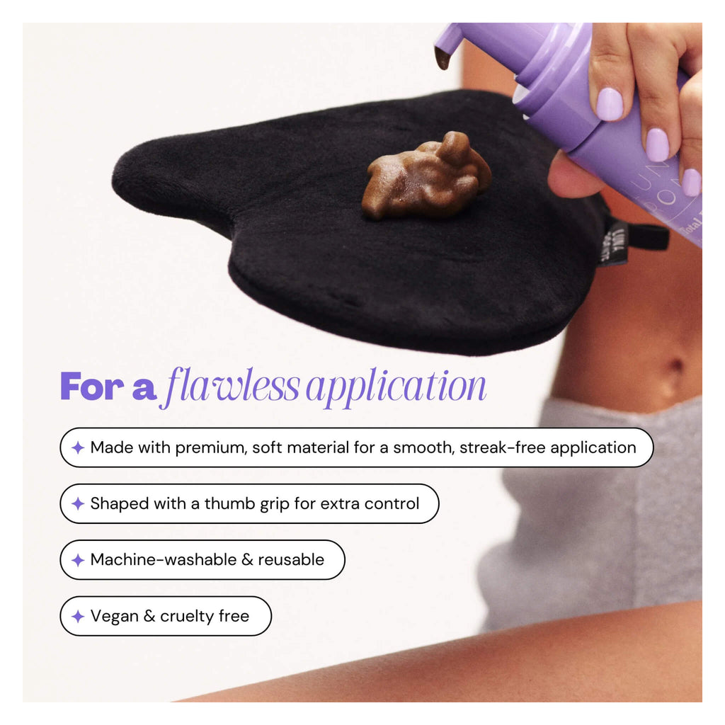 If you know, you really know. It’s the self tanner's best friend: A velvety-soft mitt, designed to make your bronzing routine easier (and more flawless) than ever. The premium material helps tanning products glide over the skin, blending with ease for an effortless, error-free glow. No streaks, no unevenness – even in the hard-to-reach areas. It’s time to leave patchy tans in your teen years (along with those questionable foundation choices).
